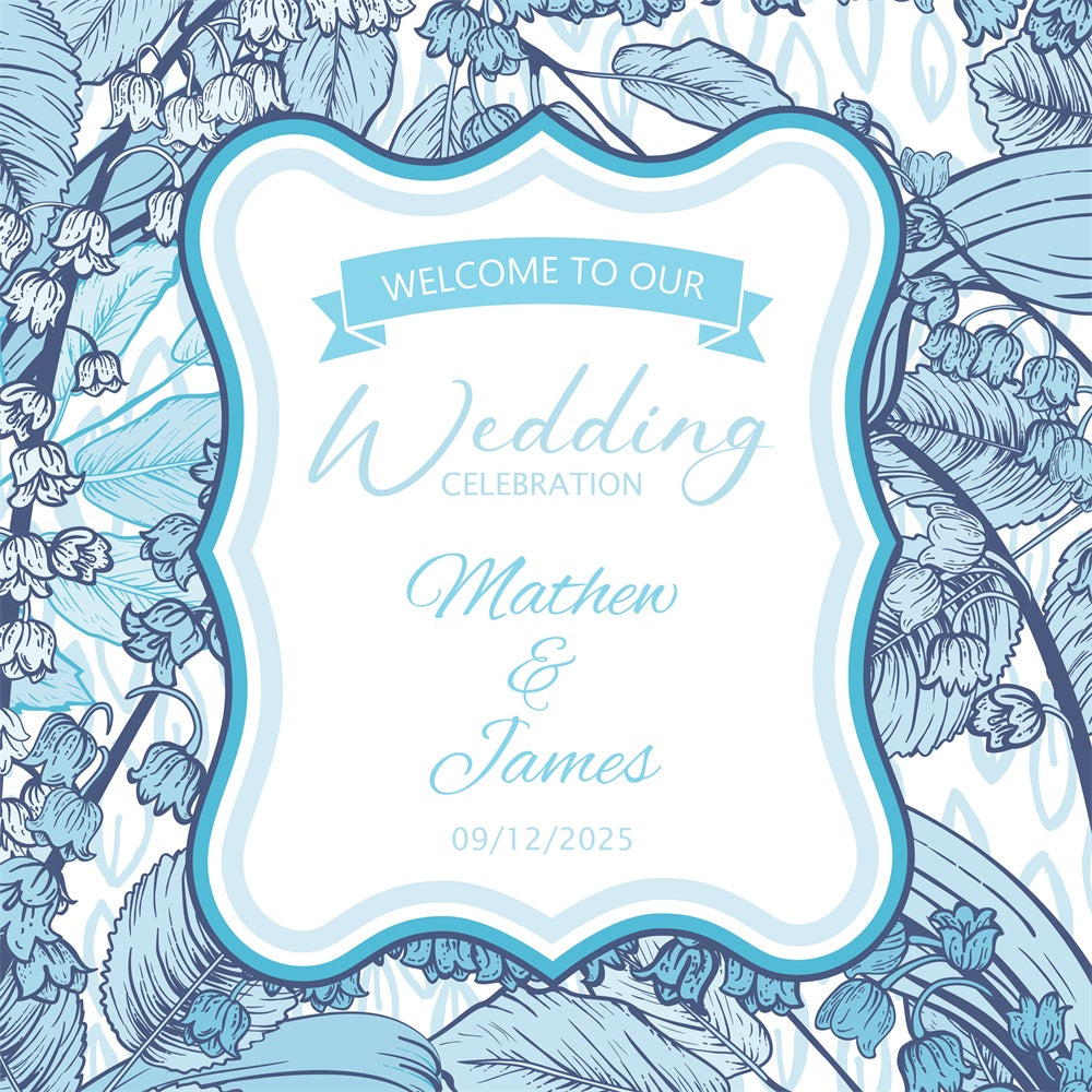 Personalisierte Fotohintergrund Hochzeit Weiß Blau Floral Hintergrund BRP1-412